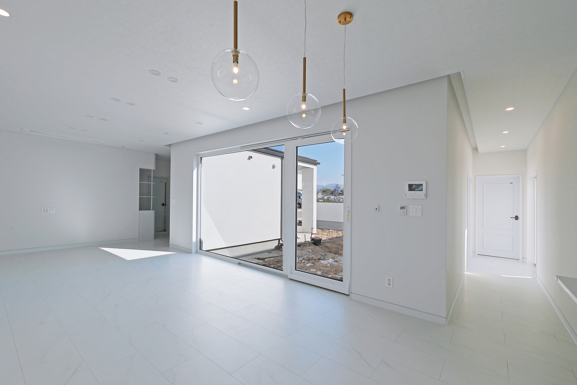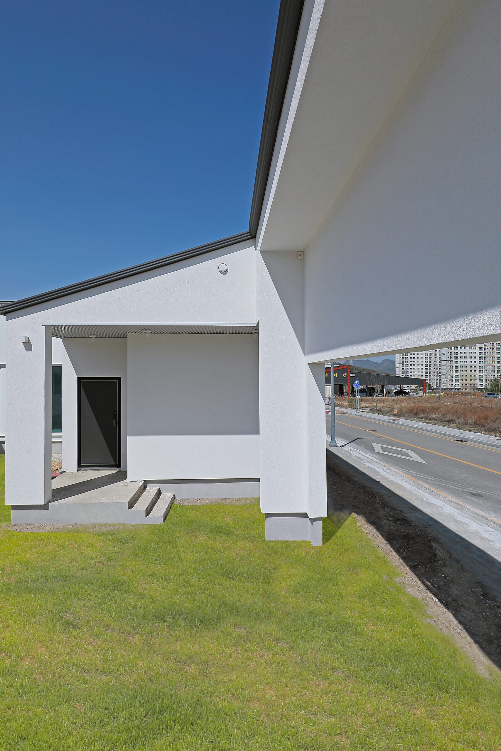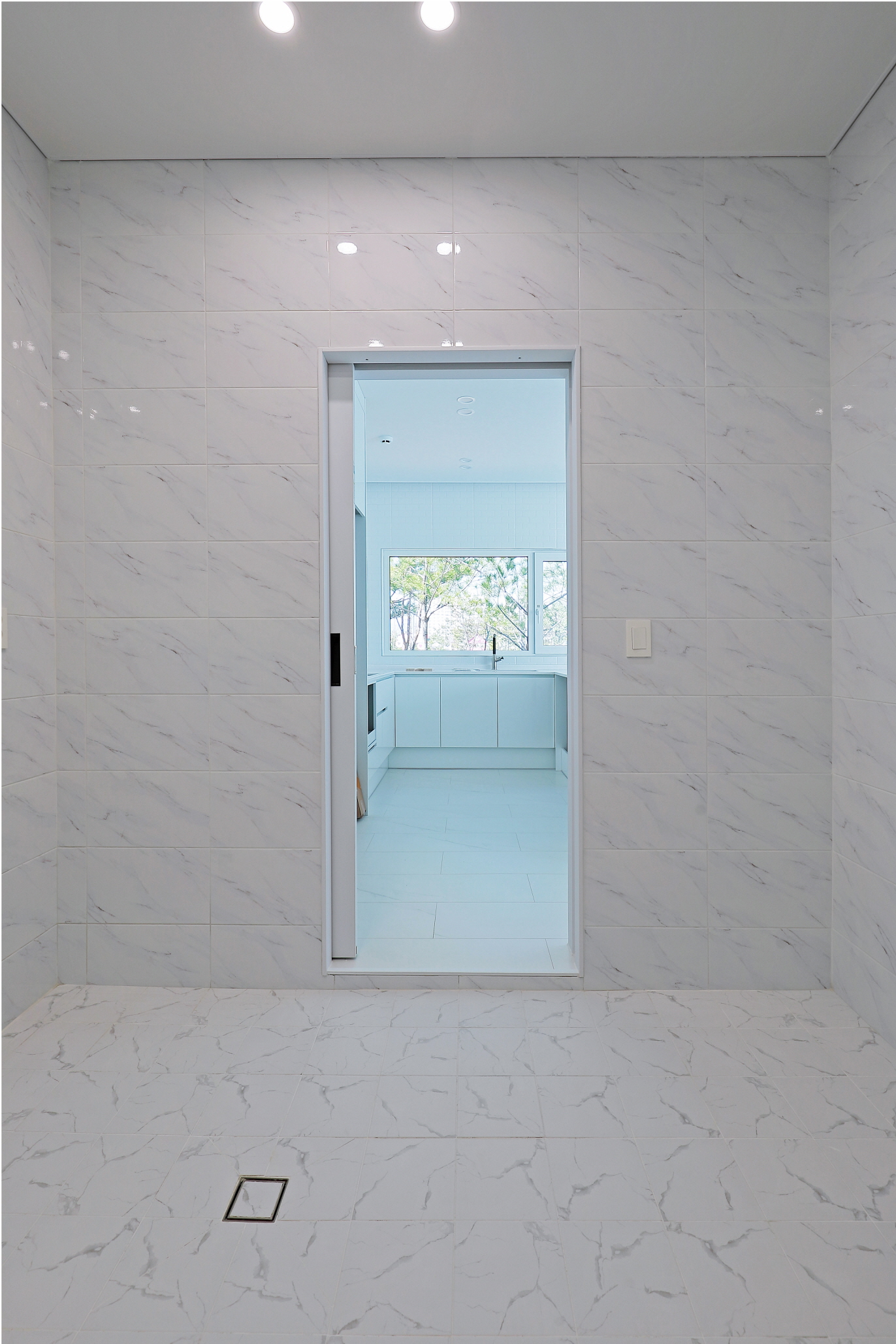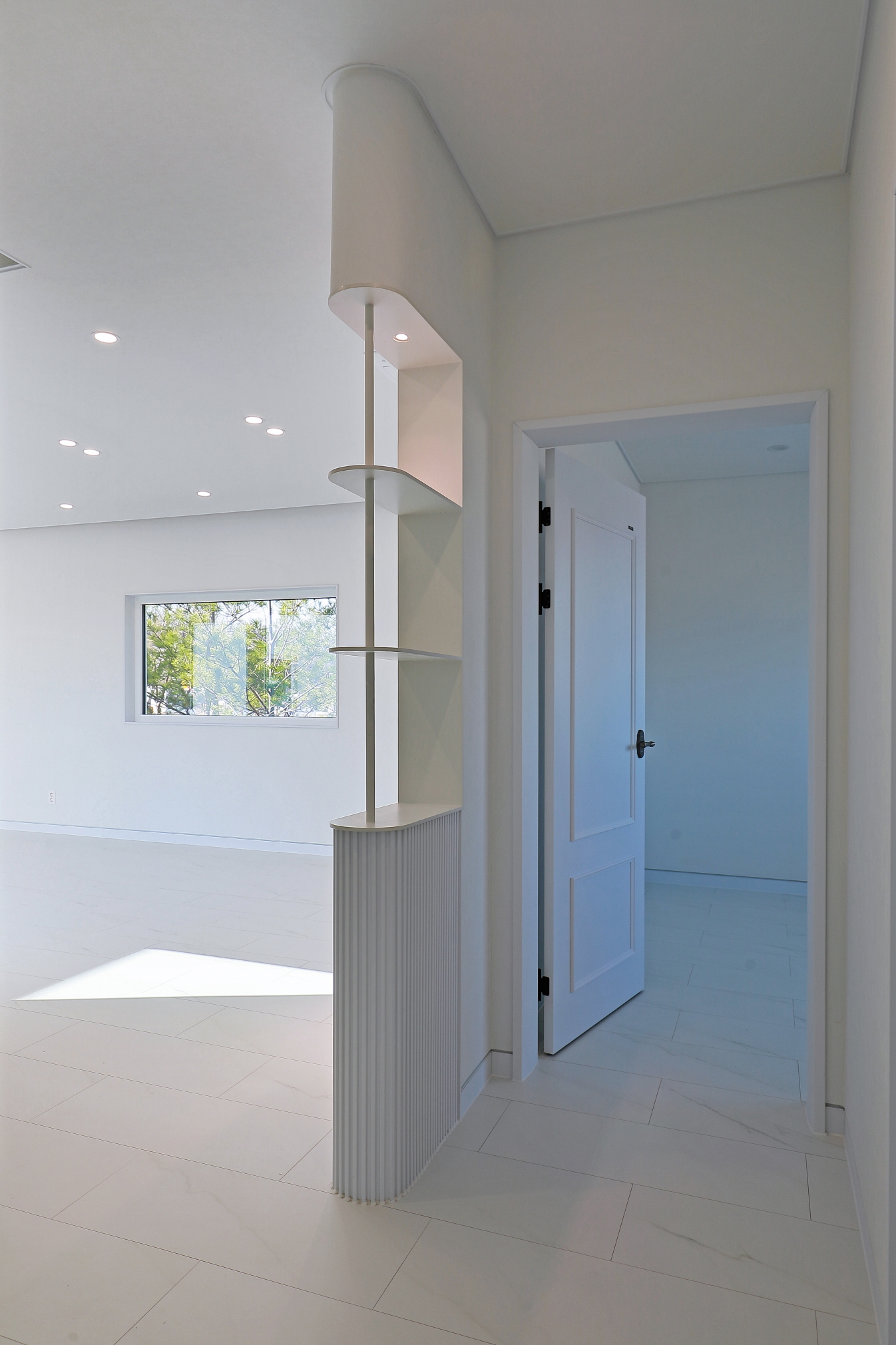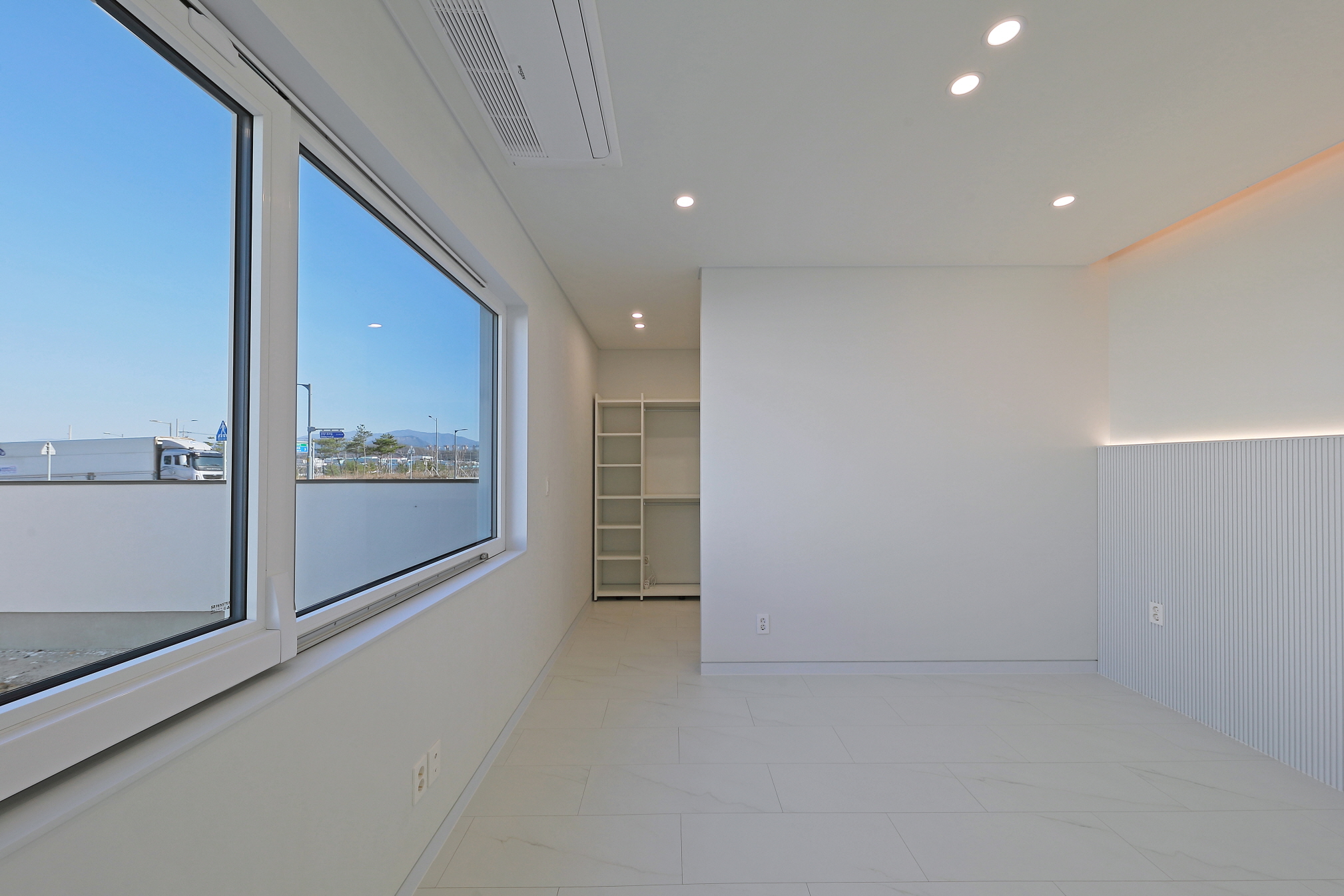 단독 주택부지에 건설된 42평 목조주택이며 외장재는 스타코플렉스, 지붕은 징크시스템창호를 사용하여 건축된 단독주택입니다. 이주택에 특징은 ㄷ자 모양으로 건축되어 마당을 둘러싸여있는 3면 모두가 마당과 연결되어 있어 창호로 들어오는 채광과 개방감을 높이고 독립적인 공간으로 마당을 사용할 수 있습니다.