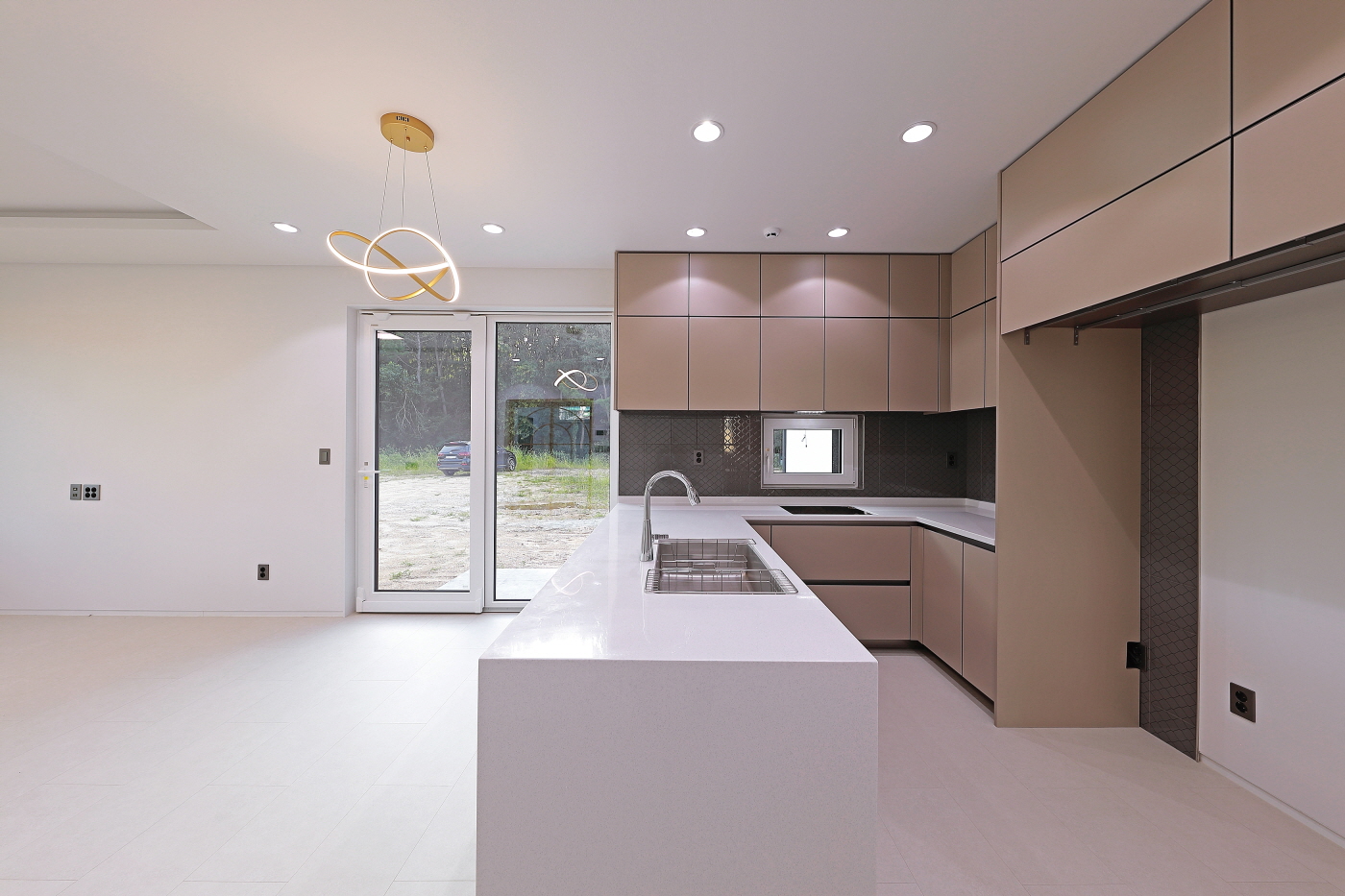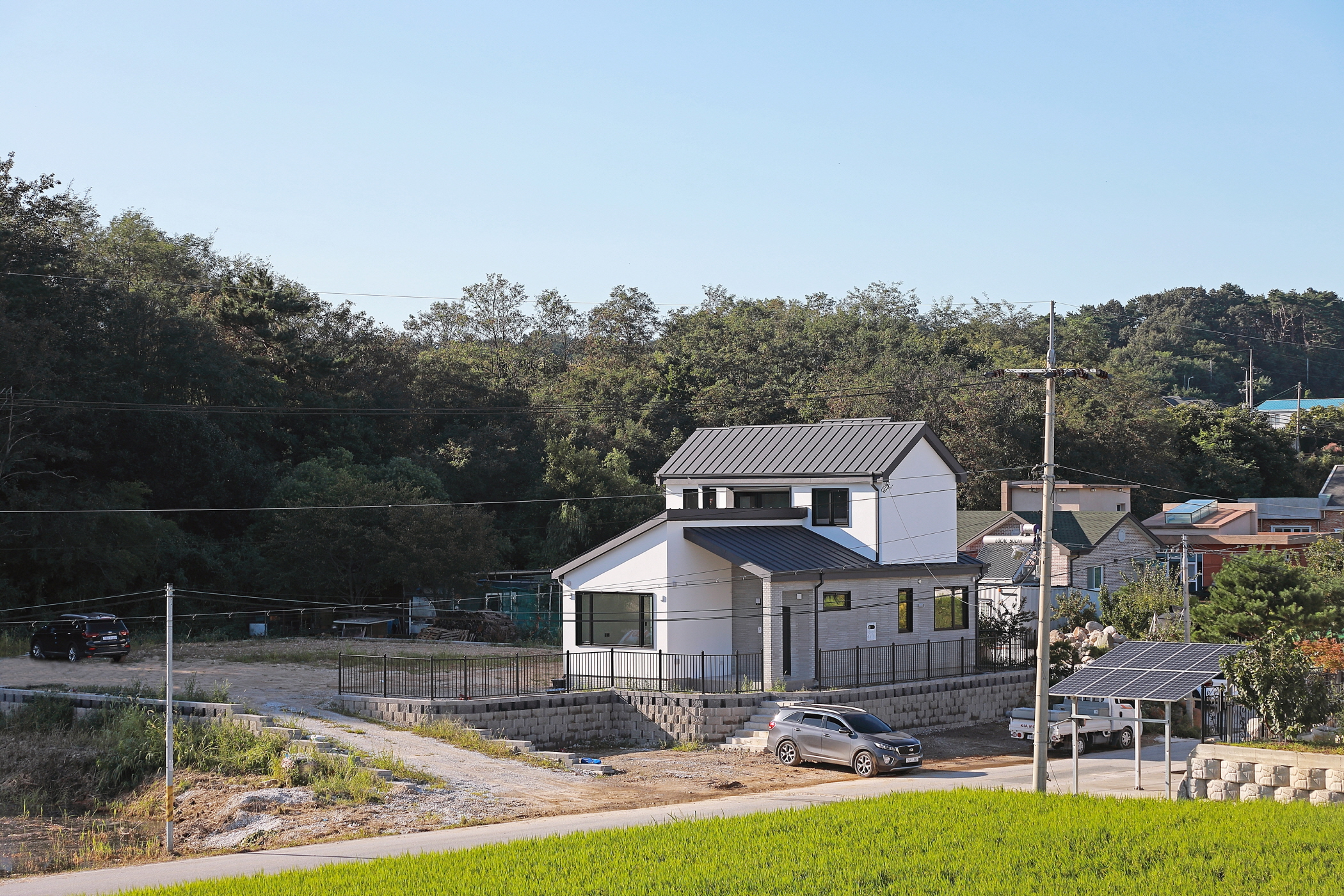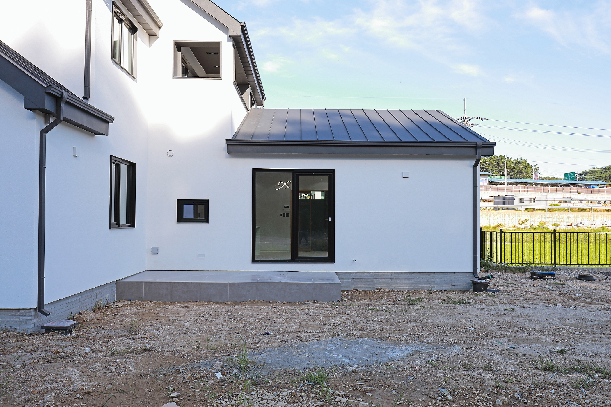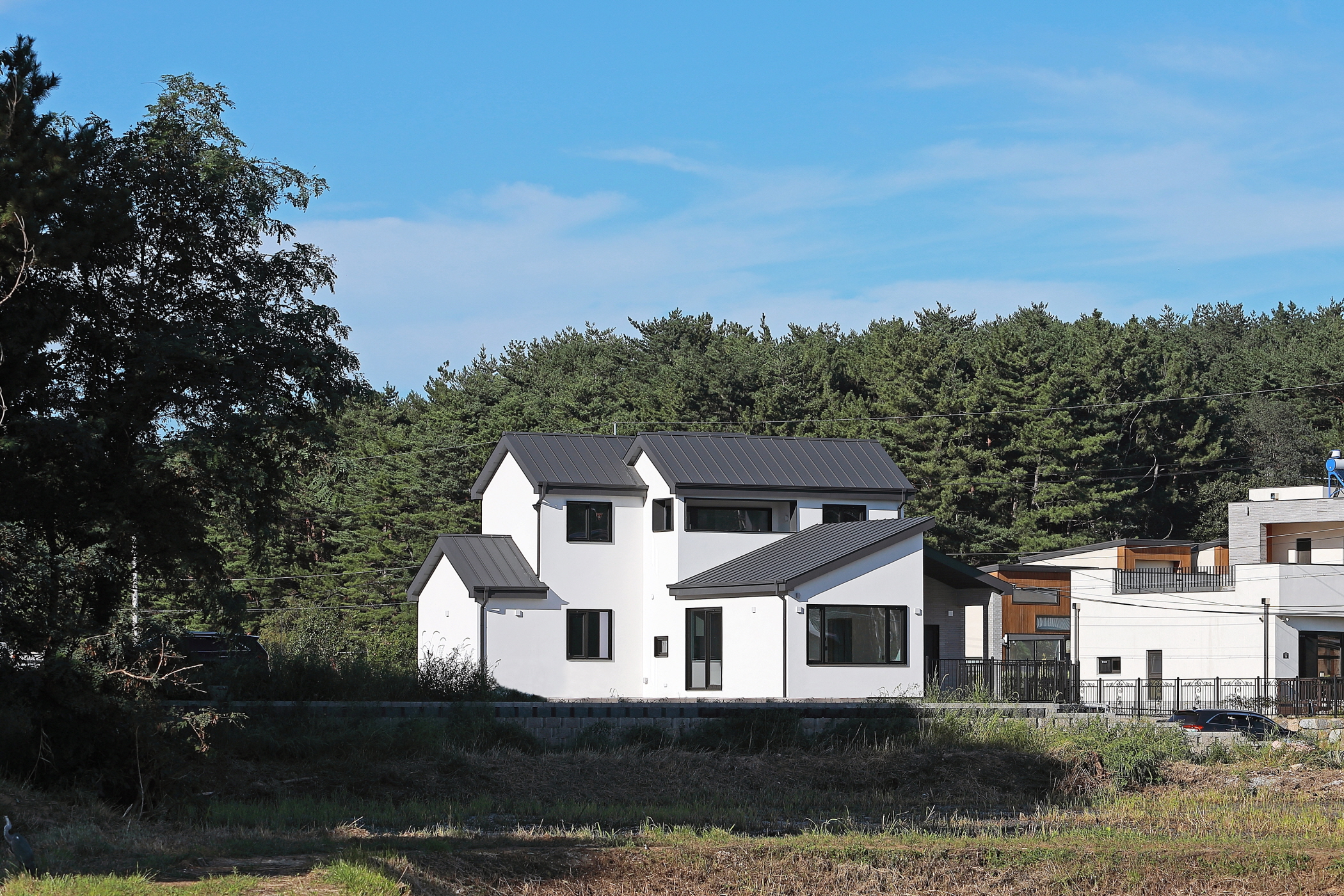 한적한 마을에 건축된 45평 2층 목조주택으로 외부재 스타코플렉스, 롱브릭타일, 지붕은 징크, 시스템 창호를 사용하여 건축된 단독주택입니다. 이 주택에 특징은 지대가 낮아 보강토를 사용하여 토목공사 후 건설 되었으면 욕실에 조족으로 욕조를 만들어서 샤워시 반신욕이 가능합니다. 또한 1층은 부부, 2층은 자녀들이 사용할 수 있게 1층과 2층 공간을 분리하였습니다